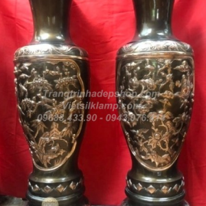 Lọ Lộc Bình 1,2m Đồng Đỏ Khảm Bạc