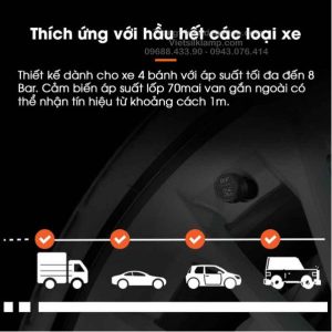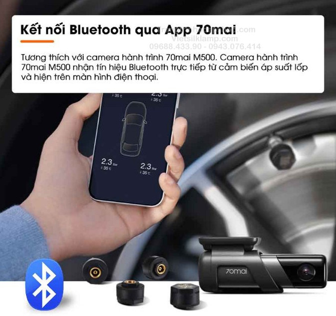 - Kết nối Bluetooth, hiển thị áp suất lốp qua App 70mai