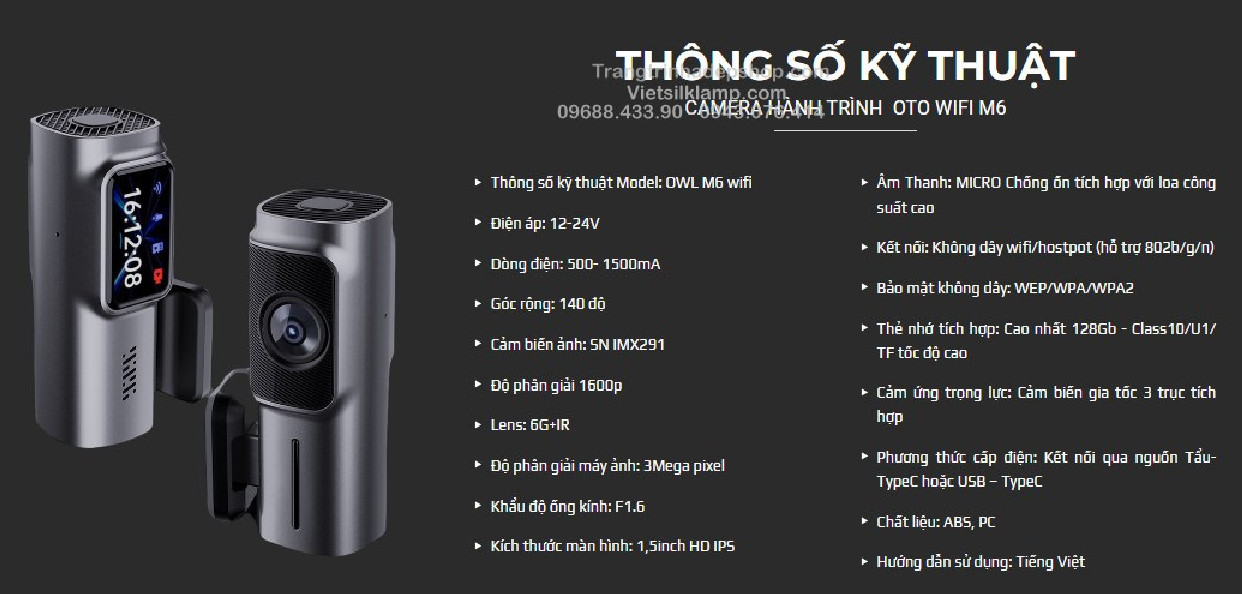 - Thông báo giọng nói: Camera hành trình M6 có thông báo khởi động, khóa video, bắt đầu ghi hình, cảnh báo chú ý an toàn khi khởi động xe bằng tiếng Việt giúp anh em lái xe an toàn hơn.