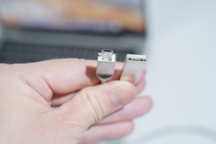 Hai đầu cáp nguyên khối chắc chắn, dạng dẹt dễ cắm.