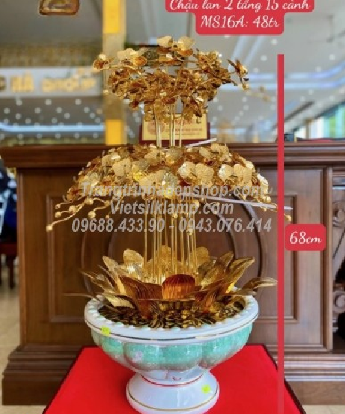 - Tên sản phẩm: Chậu Lan 2 tầng bằng đồng mạ vàng 24k mẫu 15 cành