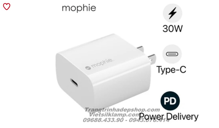 Củ sạc Mophie PD 30W USB-C GaN – Sạc nhanh tiện lợi