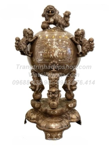 Đỉnh thất lân vờn cầu khảm ngũ sắc cao cấp