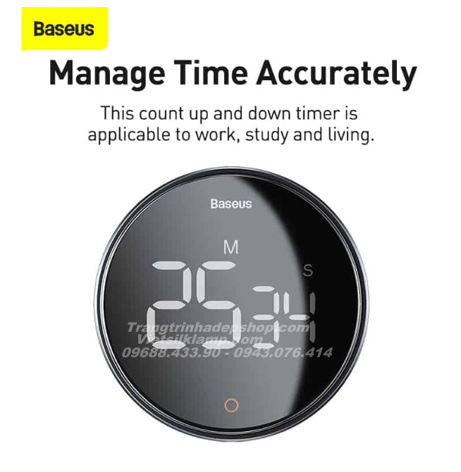 – Baseus Heyo Rotation Countdown Timer dùng để thiết lập 1 khoảng thời gian định trước cho công việc của bạn như : thiết lập thời gian họp, học tập, tập thể dục, nấu ăn…