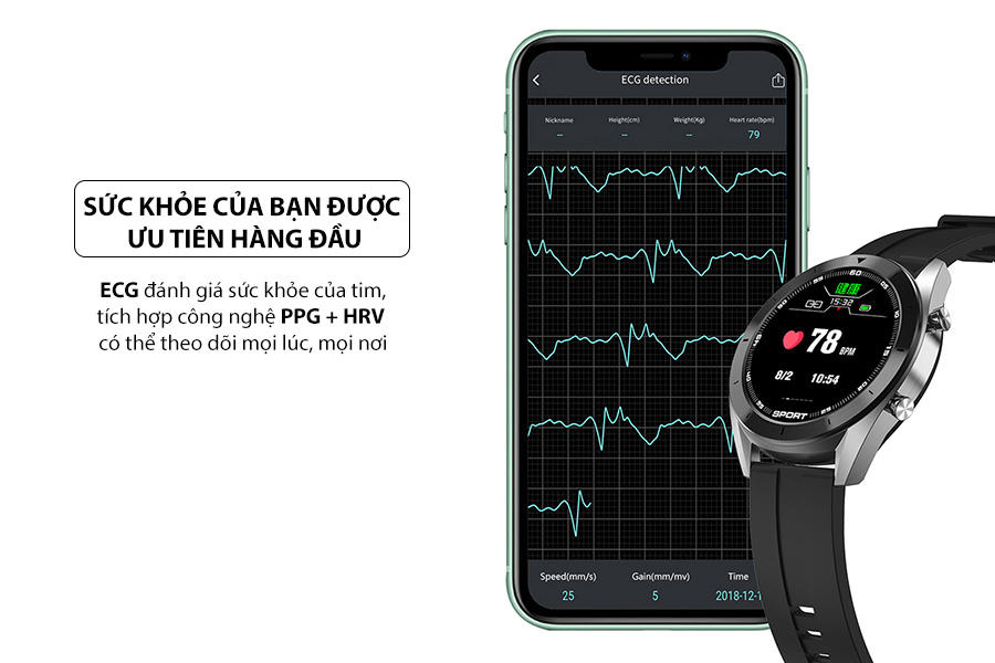 Sản phẩm tích hợp công nghệ ECG cho phép đo nhịp tim, huyết áp với độ chính xác cao, giúp bạn theo dõi sức khỏe hàng ngày dễ dàng.