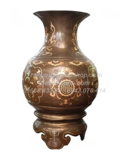 Chất liệu: Đổng đỏ nguyên chất, đúc thủ công. Khảm tam khí ( bạc, đồng đỏ, đồng vàng )