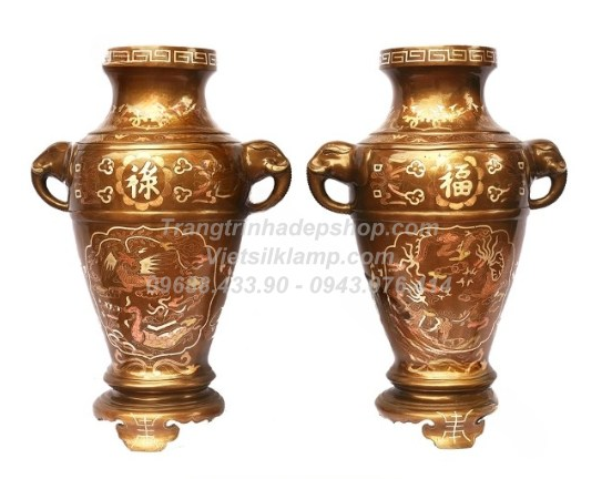 Lọ hoa tai voi đồng đỏ khảm tam khí