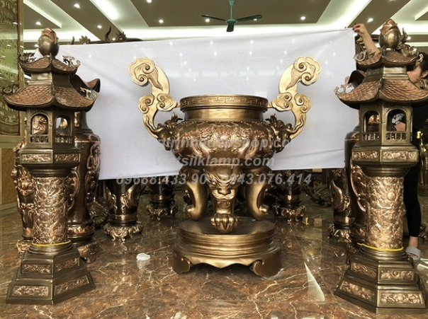 Lư Hương Rồng Nổi Phớt Nỉ 61cm Kèm Lọ Hoa Và Đèn Thờ