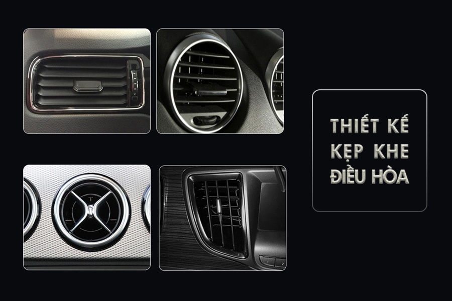 Kích thước nhỏ gọn 120×45,5×21,7mm với thiết kế kẹp khe điều hòa rất tiện lợi, phù hợp với các dòng xe khác nhau.