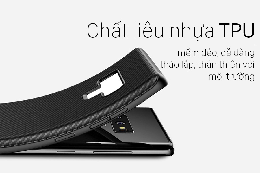 Ốp lưng iPaky chống sốc Note 9 thiết kế độc đáo, sang trọng với bề mặt vân sợi cacbon tinh tế, tạo cảm giác vô cùng thoải mái, chắc chắn khi cầm máy.