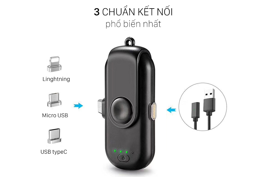 Sạc sử dụng 3 kiểu kết nối phổ biến nhất là Lightning, Micro USB và Type C nên có độ tương thích cao.