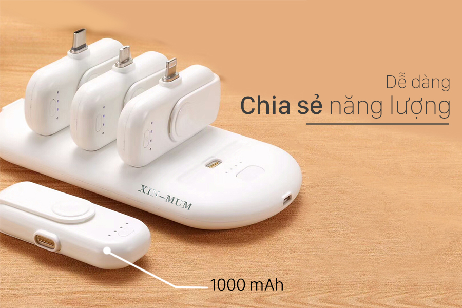 Gồm 4 mô đun sạc độc lập, mỗi mô đun có dung lượng 1000mAh rất nhỏ gọn và dễ dàng chia sẻ năng lượng cho người khác