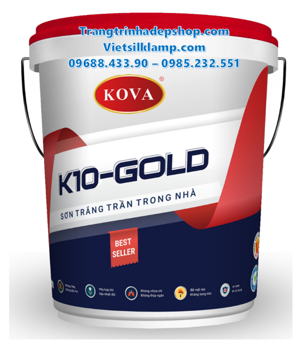 – K10-Gold: Là loại sơn hệ Acrylic, phủ trong nhà có chất lượng cao, đã nhiệt đới hóa hoàn toàn, rất phù hợp với khí hậu nhiệt đới. Dùng để phủ trong nhà sau khi đã làm phẳng tường bằng Matit KOVA hoặc bột bả KOVA trong nhà hoặc có thể lăn trực tiếp lên bề mặt tường đã khô.